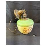 Antique Hanging Light Reverse Painted Peacock