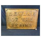 Bras Sign "Beware of Trains"