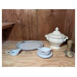 Items include Beatrix Potter collectibles; Paymaster antique adding machine, series x550 with cover; antique iron bed; ladder back chairs; Avakian Bros. antique area rug; set of Hitchcock-style side chairs; Degrave & Co. 1917 antique brass scale; antique wicker bench; dog washing station; Graco Pack n' Playu; exercise machines: Soloflex & BowFlex TreadClimber; vintage bow front dresser; fireplace tools; Theodore Haviland "Rosalinde" dish set; Weber charcoal grill; Lenox Holiday plate & more. Items are located in Madison, NY. |