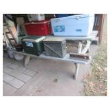 TOOLS, HOUSEHOLD, LAWN & GARDEN: Husqvarna YT42XLS rider mower, 115hrs• gas log splitter on transport• electric fencers• hi-lift jack• breaker bars• Jonsereds 2050 Turbo chainsaw• ladders• Coleman Powermate 5000ER generator• MTD Gold 26” snow blower, electric start• Troy Bilt Horse rear tine tiller• yard wagon• Smoky Mountain propane smoker• Earth Way 1-row planter• Garrison mid century buffet, hutch & dining set• Flexsteel power recliner sofa• Udell Works antique barristers cabinet• antique wood curio cabinet• queen size beds• freezers inc chest & upright• metal shelving• coolers• Sentry safe• Powr Kraft 10” radial arm saw• bench vise• power tools• 6” bench grinder• Delta floor drill press• hardware• hand tools inc screwdrivers, wrenches, sockets, hammers, pliers & more• router stand• lumber• Craftsman jointer• pipe clamps• Scottsman ice machine• Task Master pressure washer• battery chargers & much, much more!!