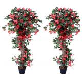 Garden Fork, 4-Tine Spading Digging Fork, Pitch Fork-45Inch, Forged Steel Y-Grip, Wood Handel-Red ( 2 PACK )