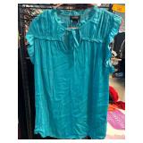 Jones & Co Teal Ruffled Cap Sleeve Blouse |
