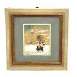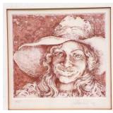 MIDCENTURY CLOWN WITH PARISOL SIGNED LITHOGRAPH