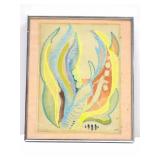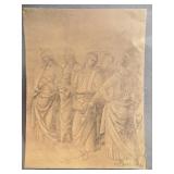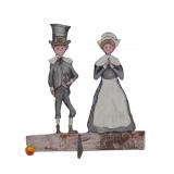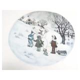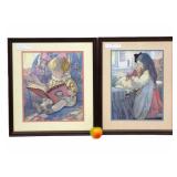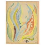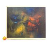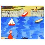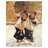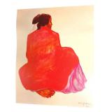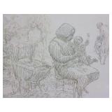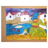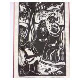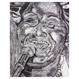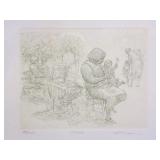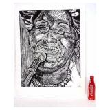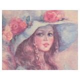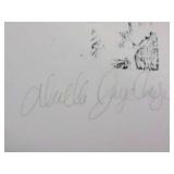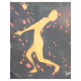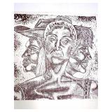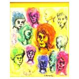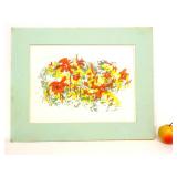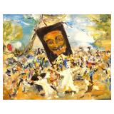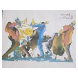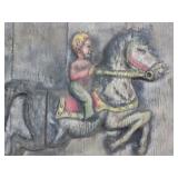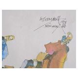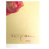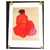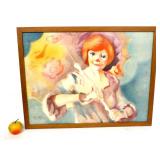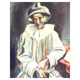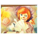 MIDCENTURY CLOWN WITH PARISOL SIGNED LITHOGRAPH