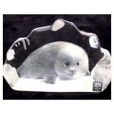 MATS JONASSON SIGNED GLASS SEAL SCULPTURE
