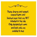 Only designated rooms, furniture only in garage and back patio are open to shop from. Please observe and respect the blocked and covered areas.
