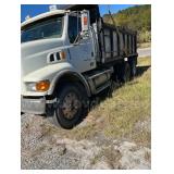 2007 Sterling Dump Truck with 361,135 miles. 6 cyl. diesel CAT-C9-D2 diesel engine that runs and is drivable but is skipping and has low oil pressure; 9 Speed Manual Transmission in operable condition; Tandem rear axles. Exterior is white and black with multiple minor dents, scratches and dings. Windshield has a crack. Tires and tread and in fair condition. Interior is tan vinyl. Air Seat driver side. Driver seat back and armrest are torn. Dash and floor show normal usage and wear. Stock AM/FM CD radio, Cold A/C, Cruise Control, Tilt Steering, Power: Steering, Windows, Door Locks.