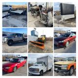 **FEATURED ITEMS** 2001 GMC 8500 Topkick; Gland 4x4 Front Loader; 2011 Ford F250 XLT Super Duty; 2015 Ford Fusion; 2003 Pontiac Grand Am; 2010 Orange Chevy Colorado; 2005 Chevrolet Venture Mobility Van; 1999 White Chevy Express 3500; 1979 Yamaha 650. Plus 5’ x 8’ Trailer, Gorilla Cart, 17’ Tilt Deck, Hyundai 10,000lb Pneumatic Diesel Forklift, 4 Cylinder Ford Motor Forklift and Much More!