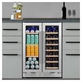 (42). Nipus 24 in. Dual Zone 20-Bottle and 65-Can Beverage & Wine Cooler Four Door Handles Wine Fridge Removable Shelves in Silver