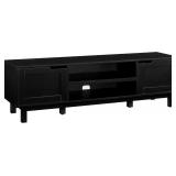 Walker Edison Furniture Company 65 in. Modern Floating Solid Black Wood TV Stand with Divided Shelf (Max TV Size 70 in.)