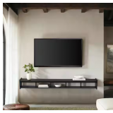 - Want a sleek space with a sweet entertainment setup that doubles as wall decor? This floating TV stand offers just that and more with its spacious cubbies and included wall-mounting hardware. With five open cubbies, your gaming consoles, streaming devices, and decor can be nestled in just the right spot.