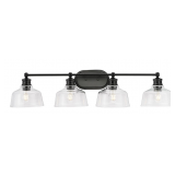 (95) Singleton 36 in. 4-Light Matte Black Vanity Light with Clear Glass Shades