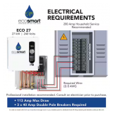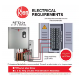 - Tankless water heater requires 4 x 40 AMP double pole breakers
