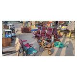 Items include, but are not limited to... Arm Chairs, antique dressing table, mirrors, recliners, bed frames, flat TV’s, hand tools, power tools, DVD’s/VHS movies, Singer treadle base, TV stands, wardrobe, storage totes, lamps, new in box (NIB) cookware, comforters, full bed, pet carriers, microwaves, Casio keyboard, book shelves, dining tables & chairs, crockpots, garden tools, hoses, computers, dressers, night stands, chests of drawers, desks, rolling ottoman with storage, wheel barrow, fishing poles, ladders, leaf shredder, various types of hardware, plastic patio chairs, Dr’s floor scale, fertilizer spreader, vintage Proto rolling tool box, gas cans, ice chests, water coolers, trash cans, sewing desks & machines, fire place tools, Commercial freezer, file cabinets, wall art, china cabinets, curio cabinets, ironing boards, garden sprayers, Fondriest road bike, 16”x7” mag wheels, purses, boots, clothing, tools, books, CD’s, LP vinyl records, suitcases, hedge trimmers, blower, end tables, coffee tables, area rugs, camping gear, microwaves, small kitchen appliances, vacuums, ice buckets, rocking chairs, jewelry boxes, jewelry, baskets, tube radio, floor lamps, carpet cleaners, oriental dolls, picture frames, home stereo equipment , cedar chest, knives, belt buckles, sofa/hall tables, ranch oak, lighters, unicorns, baker’s racks, shop vac, shoe racks, Correlle Ware, Pyrex, milk glass, depression glass, Carnival glass, dual fuel Coleman stove, airbrush compressor, walkers, commodes, roaster, fish tank with stand, antiques and LOTS MORE!!!