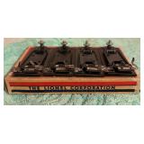 Auto: 1970’s Pontiac Firebird “Esprit”, Sierra Gold- as in “The Rockford Files”, 82,439 Miles, Garage Kept for over 40 Years, 4 Bucket Seats, 350 V-8, Last Inspected in 2012, Collection of Trains: HO Train Sets Consisting of Merchandiser Freight, Passenger Sets, 5 American Flyer "Rifle"Sets (Long Narrow Box), 12 Gilbert Sets; 11 Freight Sets, 1 Passenger Set, Campbell Soup Set (was only given to employees) 5 Digits are in later 50’s, 4 Digits are early 50’s, 5 Dealer Display Sets, Lionel Train Sets consist of Train and Platform Accessories Trains with Original Boxes Home Furnishings: 22K Urn Nautical Centerpiece, Vintage Norpro Percival Duffin’s Salt Tin,1960’s Lamb Planter, Silverplated and Sterling Silver Flatware Sets, Little Small Red Wagon- Radio Tot, Sports and Other Pennants, Many Framed Prints, Many Small Wrought Iron Tables with Tile Tops, Collection of Decorator Bookends, Full Set of Pocket Billard’s Balls, Live Strong Treadmill, PR. Of 2 Drawer Metal Filing Cabinets, Lladro Figurines, 2 Reclining Chairs, 2 Oak Bookshelves, Collection of Miniatures and Display Shelf, Small Box of Fossils Reloading Equipment: Reloading Equipment (Bullet), Lots of Lead for making Bullets