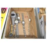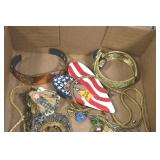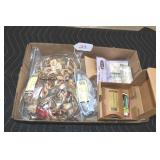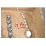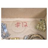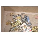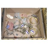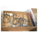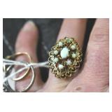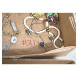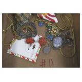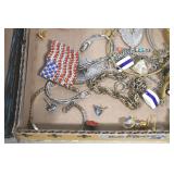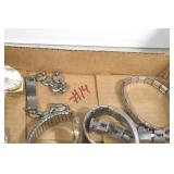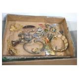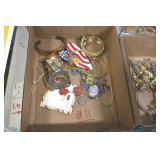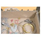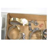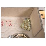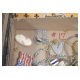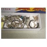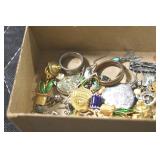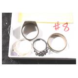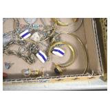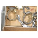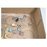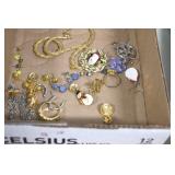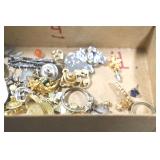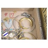 Jewelry and Sterling: Mother of Pearl Earrings, Gold, Sterling, and Other Rings, Pocket Watches, Wrist Watches, Bracelets, Necklaces, Earrings, Pins, Costume Jewelry, Sterling Flatware, and Other