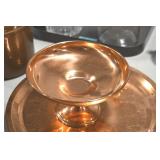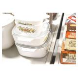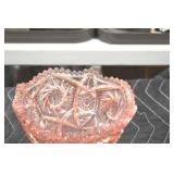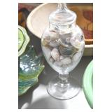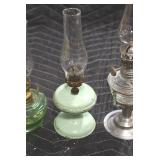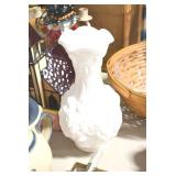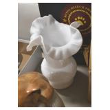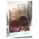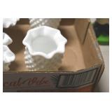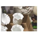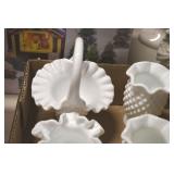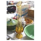 Antique Glassware: Corningware, Decorative Vases, Pink Depression, Yellow Depression, Glass Paper Weights, Fenton Glass, Milk Glass, Art Glass, Colored and Clear Glass Oil Lamps, Ned Smith Glass Plate, Glass Lady Figures, and Other