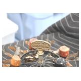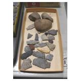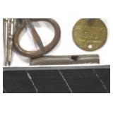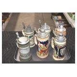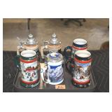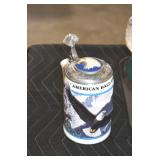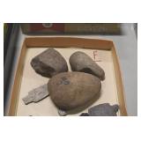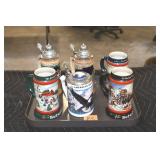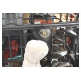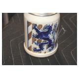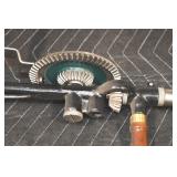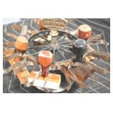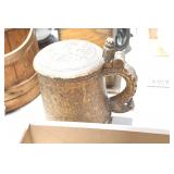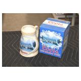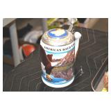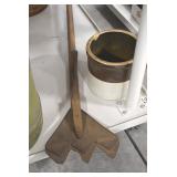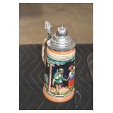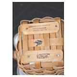 Antiques and Collectibles: (13) Carved Wooden Canes and Walking Sticks, (34) Longaberger Baskets of Various Sizes and Styles, Longaberger Inserts, Longaberger Lids, Large Amount of Petroliana Related Advertising Tins, STP Advertising Display, (7) Various Lots of Indian Arrowheads, (11) Lots of Various Doilies, (18) Lots of Various Ball Caps, Large Amount of Vintage Tools, Pottery Crocks and Jugs, Pottery Planters, McCoy Pottery, German Steins, Large Amount of Royal Doulton Toby Mugs, Railroad and Other Lanterns, Cast Bookends, Umbrellas, Wooden Advertising Boxes, Vintage Advertising Thermometers and Signs, Advertising Tins, Brass Allegator Horn, Vintage Books, Various Coins, Pins, Cast Pig Bank, Vintage Baseball Mitts, Marbles, Golf Clubs, Copper and Brass Items, Vintage Scales, Old Hickory Shoe Lace Display w/Shoe Laces, Woodware, Vintage Agricultural Almanacs, Early Black Americana Items, Cutco Knives, Holiday Decorations, Ladies Purses, Wooden Buckets and Churns, Carved and Signed Wooden Bird, Belt Buckles, Match Cases, Various Ned Smith and Other Framed and Unframed Prints and Pictures, Movie Posters, and Other