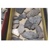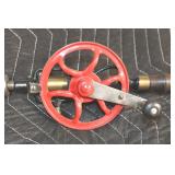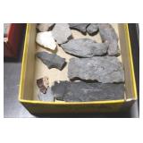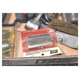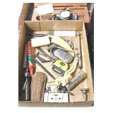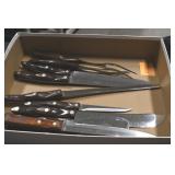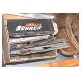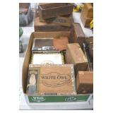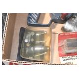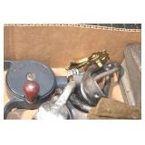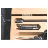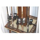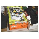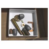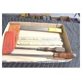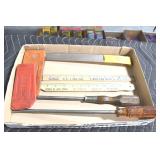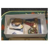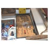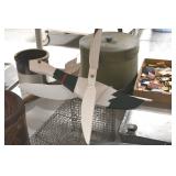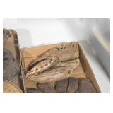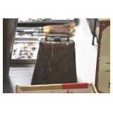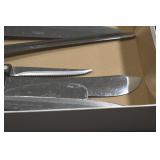 Sporting and Fishing Related: (9) Various Machetes, Winchester Flashlight, Various Ammunition, Brass, Powder Horns, Powder Flasks, Large Amount of Folding, Pen, and Sheath Knives, Decoys, Fishing Rods, Large Amount of Fishing Lures, Fishing Flies, Reels, Tackle, and Other