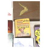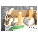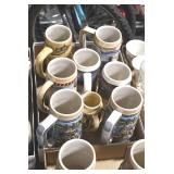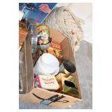Antiques and Collectibles: (13) Carved Wooden Canes and Walking Sticks, (34) Longaberger Baskets of Various Sizes and Styles, Longaberger Inserts, Longaberger Lids, Large Amount of Petroliana Related Advertising Tins, STP Advertising Display, (7) Various Lots of Indian Arrowheads, (11) Lots of Various Doilies, (18) Lots of Various Ball Caps, Large Amount of Vintage Tools, Pottery Crocks and Jugs, Pottery Planters, McCoy Pottery, German Steins, Large Amount of Royal Doulton Toby Mugs, Railroad and Other Lanterns, Cast Bookends, Umbrellas, Wooden Advertising Boxes, Vintage Advertising Thermometers and Signs, Advertising Tins, Brass Allegator Horn, Vintage Books, Various Coins, Pins, Cast Pig Bank, Vintage Baseball Mitts, Marbles, Golf Clubs, Copper and Brass Items, Vintage Scales, Old Hickory Shoe Lace Display w/Shoe Laces, Woodware, Vintage Agricultural Almanacs, Early Black Americana Items, Cutco Knives, Holiday Decorations, Ladies Purses, Wooden Buckets and Churns, Carved and Signed Wooden Bird, Belt Buckles, Match Cases, Various Ned Smith and Other Framed and Unframed Prints and Pictures, Movie Posters, and Other