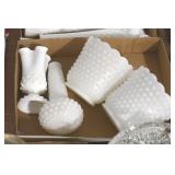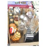 Antique Glassware: Corningware, Decorative Vases, Pink Depression, Yellow Depression, Glass Paper Weights, Fenton Glass, Milk Glass, Art Glass, Colored and Clear Glass Oil Lamps, Ned Smith Glass Plate, Glass Lady Figures, and Other