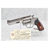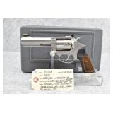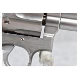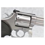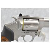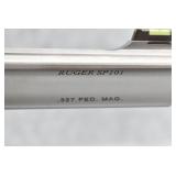 191R. Ruger – Mod. SP 101 – 327 Fed. Cal. Double Action Revolver – w/4” Barrel w/Fiber Optic Front & Rear Square Notch Sights – Stainless Finish – w/Factory Rubber Grips w/Wood Insert – As New w/Factory Box & Manual