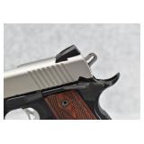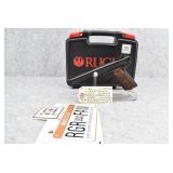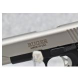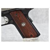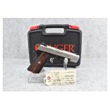 195R. Ruger – Mod. SR1911 – 45 Auto Cal. Semi-Auto Pistol – w/4.25” Barrel w/3-Dot White Sight – Stainless/Black Two-Tone Finish – w/Factory Wood Checkered Grip w/Ruger Medallion – w/2 Factory Magazines – Unfired & New w/Factory Hard Case & Manual