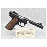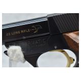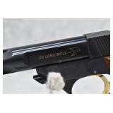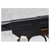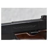 176R. High Standard – Mod. Supermatic Trophy-106 Military – 22LR Cal. Semi-Auto Pistol – w/7.25” Fluted Barrel w/Front Blade & Rear Adj. Sights – Blued Finish – w/Checkered Thumb Rest Wood Grip – w/Factory Magazine – w/Gold Trigger