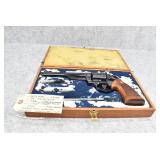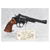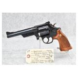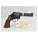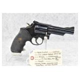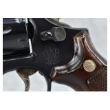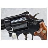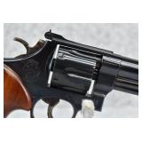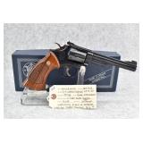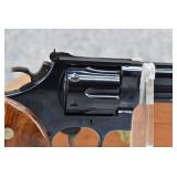 182R. Smith & Wesson – Mod. 19-4 Combat Magnum – 357 Mag. Cal. Double Action Revolver – w/6” Barrel w/Front Blade & Rear Adj. Sights – Blued Finish – w/Checkered Wood Factory Target Grips w/S&W Medallion – w/Additional Pachmayr Rubber Grip – w/Target Trigger & Target Hammer (3T’s) – w/Factory Box, Manual & Cleaning Kit – Mfg. 1980