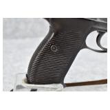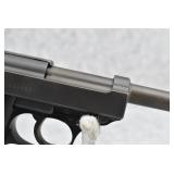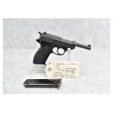 179R. Walther – Mod. P-38 – 9mm Cal. Semi-Auto Pistol – w/5” Barrel w/Front Blade & Rear U Notch Iron Sights – Matte Blued Finish – w/Checkered Black Plastic Grips – w/2 Factory Magazines