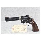 174R. Smith & Wesson – Mod. 19-5 Combat Magnum – 357 Mag. Cal. Double Action Revolver – w/6” Barrel w/Red Blade Front & Rear Adj. Sights – Blued Finish – w/Checkered Target Wood Factory Grip w/S&W Medallion – w/Target Trigger & Target Hammer (3T’s)