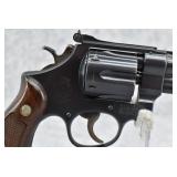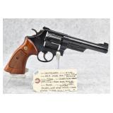 70R. Smith & Wesson – Mod. 14-3 – 38 S&W Spl. Cal. Double Action Revolver – w/Custom 6” Barrel w/Bo-Mar Target Full Rib w/Sights- Blued Finish – w/Black Synthetic Checkered Pachmayr Grip – w/Smooth Trigger