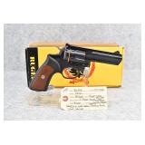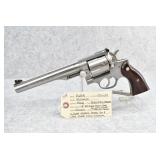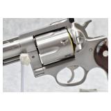 190R. Ruger – Mod. Redhawk – 44 Mag. Cal. Double Action Revolver – w/7.5” Barrel w/Red Blade Front & Rear Adj. Sights – Stainless Finish – w/Factory Wood Grips w/Ruger Medallion – w/Factory Box, Sleeve, Ruger Rings & Manual