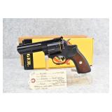 193R. Ruger – Mod. GP100 – 357 Mag. Cal. Double Action Revolver – w/4” Barrel w/Front Blade & Rear Adj. Sights – Blued Finish – w/Factory Rubber Grip w/Wood Insert – As New w/Factory Box, Sleeve & Manual