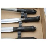 37R. Custom Rifle – Built on a Custom Kelby Inc. “Stolle-Panda” F Class Receiver – Single Shot Bolt Action Rifle – w/Custom Heavy Stainless Unknown Caliber Barrel w/A Ezell “PDT” Muzzle Tuner – w/Custom Blue Wide Forearm Fiberglass Stock – w/Spiral Fluted Bolt – w/Fine Tuned Custom Trigger – Gun Weighs 13.1 lbs