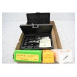 63. Lot Including Metal Ammo Can, 3 Paige Sighting Devices & 1 Remington 22 Short Factory Full Box of Ammo