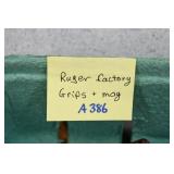 195R. Ruger – Mod. SR1911 – 45 Auto Cal. Semi-Auto Pistol – w/4.25” Barrel w/3-Dot White Sight – Stainless/Black Two-Tone Finish – w/Factory Wood Checkered Grip w/Ruger Medallion – w/2 Factory Magazines – Unfired & New w/Factory Hard Case & Manual