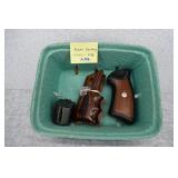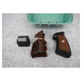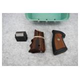 182R. Smith & Wesson – Mod. 19-4 Combat Magnum – 357 Mag. Cal. Double Action Revolver – w/6” Barrel w/Front Blade & Rear Adj. Sights – Blued Finish – w/Checkered Wood Factory Target Grips w/S&W Medallion – w/Additional Pachmayr Rubber Grip – w/Target Trigger & Target Hammer (3T’s) – w/Factory Box, Manual & Cleaning Kit – Mfg. 1980