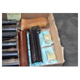 63. Lot Including Metal Ammo Can, 3 Paige Sighting Devices & 1 Remington 22 Short Factory Full Box of Ammo