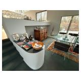 This large contemporary home offers many treasures inside. Gorgeous antiques and Mid-Century pieces, Fine Art, Vintage Perfume Bottles, Rugs, Home Decor, Kitchen Items, Unique Cut Glass and Crystal Pieces, Books, Clothing, Linens, Queen Bed and Nightstands, U Shaped Office Desk, Lots of Artwork, Bikes and much more