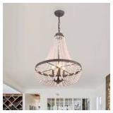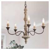 LNC Wood Candle Chandelier 5-Light Weathered White Dining Room Chandelier Bronze Rustic Chandelier with French Country Style