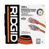RIDGID 100 ft. 10/3 Heavy Duty Indoor/Outdoor SJTW Extension Cord with Lighted End, Orange/Grey