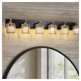 GoYeel Crystria 5-Light Matte Black Modern/Farmhouse Clear Crystal Island Linear Hanging Pendant Light