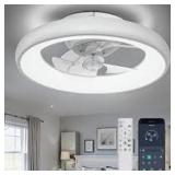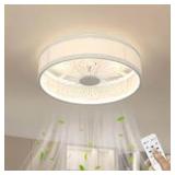 FANNEHONNE 20 in. Integrated LED Indoor White Flush Mount Ceiling Fan with Light for Low Profile Bedroom