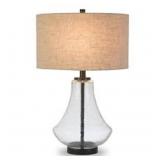 Lagos 23 in. Antique Bronze and Seeded Glass Table Lamp with Flax Shade.