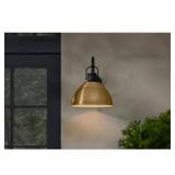 Home Decorators Collection Shelston 15.5 in. 1-Light Black and Gold Outdoor Barn Light Wall Fixture with Metal Shade