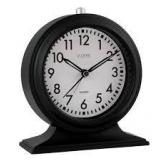 ITEM IS NEW AND REFUNDABLE BEFORE ITEM LEAVES THE BUILDING AND IF DIFFERENT THEN DESCRIBED BELOW. RETAIL: $16 Simple, easy to set quiet quartz alarm Traditional, stylish black matted clock Illuminate hour & minute hand for viewing at night