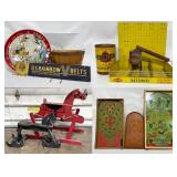 = 31.5” T Knight, Dart Board, Open Sign (powers on), G.I. Joe, Beer Tab Handle & More