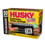 - The Husky 42 Gal. Clean-up Bags (50-count) are ideal for all your tough clean-up jobs. Featuring a tear and puncture-resistant design, it includes true tie flaps and 1-by-1 dispensing for an easy use.