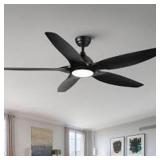 60 in. Indoor Black Modern LED Ceiling Fan with Remote Control, Reversible 5 Blades and Reversible DC Motor